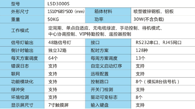 LSD3000S型交通信號控制機(jī)采用先進(jìn),穩(wěn)定、可靠的模塊化多處理器、多總線系統(tǒng)結(jié)構(gòu)。采用高速ARM控制器及大規(guī)模集成電路,實(shí)時運(yùn)算道路交通信息,如道路交通狀態(tài)、道路車流量。全部信號機(jī)可以組成城城網(wǎng),完成于指揮中心信息交換。根據(jù)城市交通模型進(jìn)行云計算,計算數(shù)據(jù)精準(zhǔn)。帶有一塊7寸液晶觸摸顯示屏,和一個數(shù)字鍵盤。